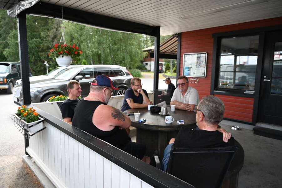 Sepen grillin vakiokalustoon kuuluva herraseurue lounaskahvitteli ”Kaarinan psykiatrisessa keskustassa”.