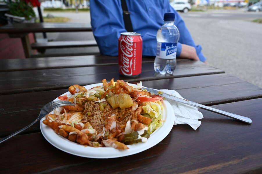 Jari tilasi Sepen grillin luukulta Rahtarin rukkasen. - Tää on alueen paras grilli, hän toteaa. Kuva: Eveliina Portnoj
