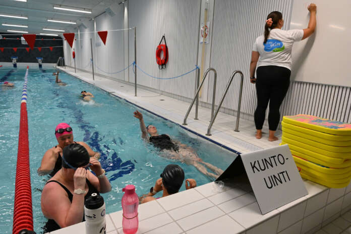 Uimista voi harjoitella turvallisesti uimahallissa, mutta se ei poista avovesikokemuksen tärkeyttä. Irene Paloposki (oik.) laittoi tekniikkaryhmäläisensä harjoittelemaan uinticooperia varten. 400 metriä 12 minuutissa on aikuisella, yli 30-vuotiaalla naisella hyvä tulos. Kuva: Suvi Pulliainen.