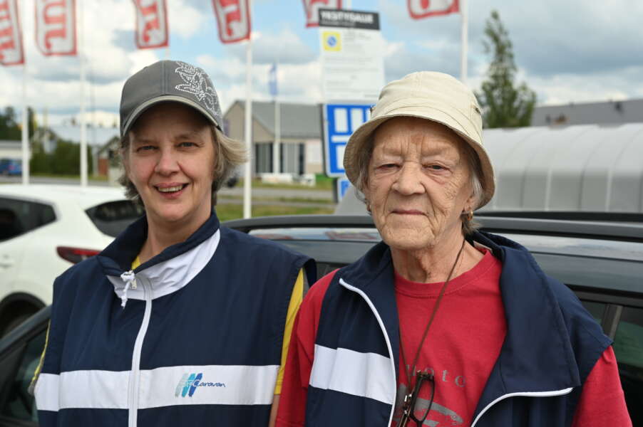 Äiti ja tytär pitävät ostosreissullaan pientä hengähdystaukoa parkkipaikalla. Entiset 45 vuoden ajan kaarinalaiset asuvat nykyisin Paimiossa, josta matka ei ole liian pitkä Krossiin.