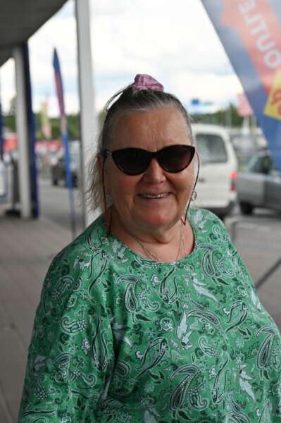 Iloisena Lidlistä saapuva rouva pysähtyy juttelemaan, kun toimittaja on jo tuloksetta yrittänyt saada parkkipaikalla viliseviä lapsiperheitä haaviin. Anne Johansson on saapunut ostoksille Krossiin ”läheltä, mutta kaukaa” Piikkiöstä.