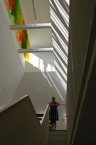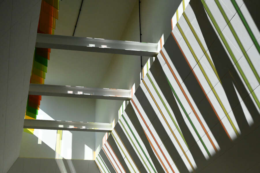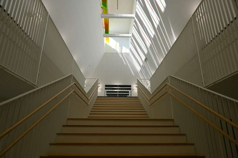 Katsoessa kattoon voi huomata ikkunoiden värikkäät yksityiskohdat, joiden läpi valo siivilöityy hienosti etenkin iltapäivisin. Varmasti koululaisetkin ihailevat sitä erityisesti nyt, kun kännyköiden käyttöä kouluissa ei enää syksystä lähtien sallita?