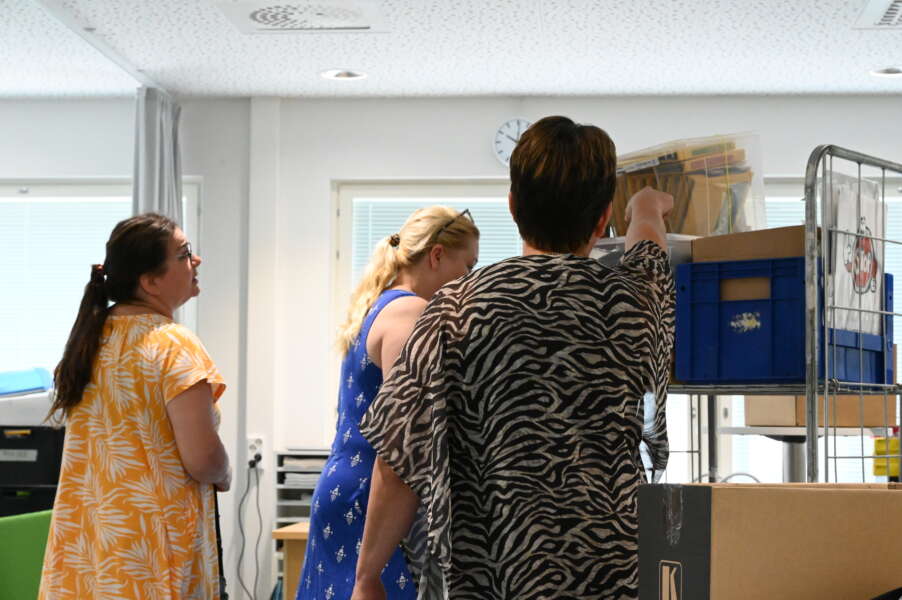 – Kaikki me aherramme, viime perjantaista asti on täällä purettu ja vastaanotettu huonekaluja. Ensin pakattiin vanha koulu kokonaan, he kertovat toisiaan säestäen.