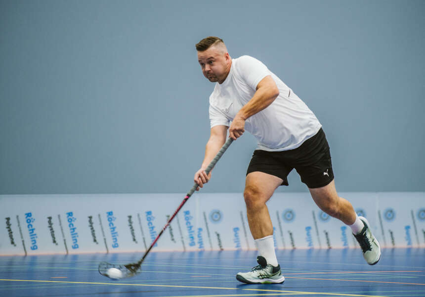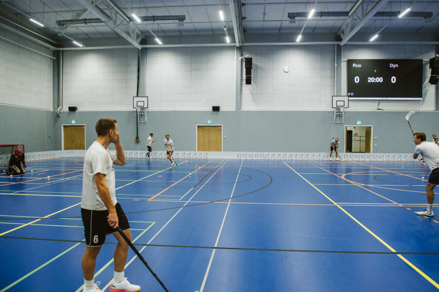 Ja puitteilla salibandyn pelaaja tarkoittaa tietysti pelin kannalta olennaisinta, eli alustaa. Sisäliikuntahallin tuore matto saakin pelaajien kehut.