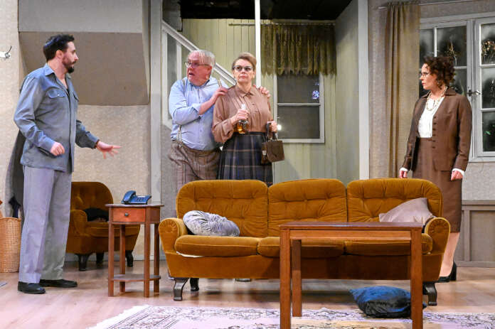 Ilmasta rahaa Kaarina-teatterissa 5. joulukuuta asti. Käsikirjoitus Michael Cooney, ohjaus Eija-Irmeli Lahti, lavastus Minna Ihalainen, puvustus Tuula Peltoniemi.