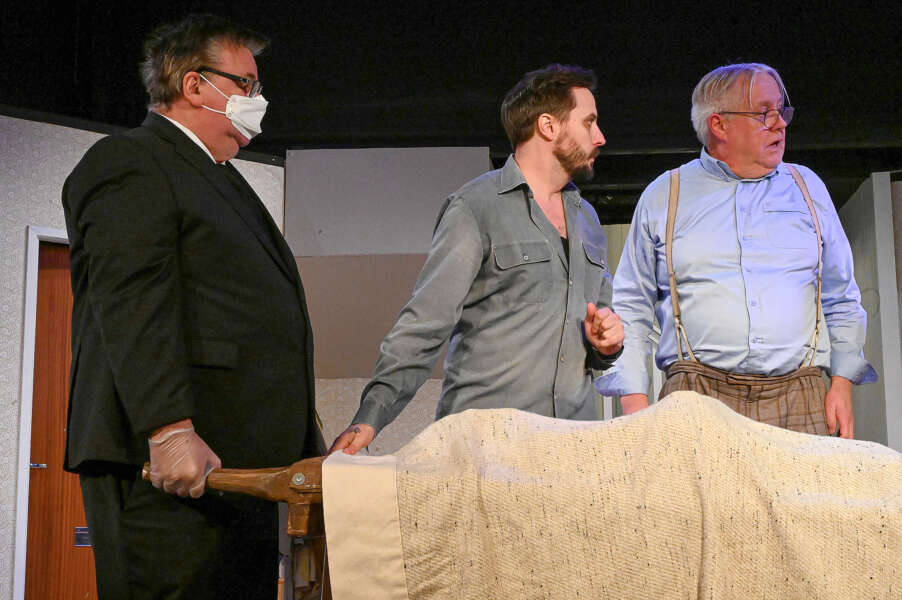 – Tämä on hauska farssi, kannattaa tulla, jos tykkää nauramisesta, Tohtori Kapanen eli Jarmo Selin vinkkaa tummassa puvussaan.